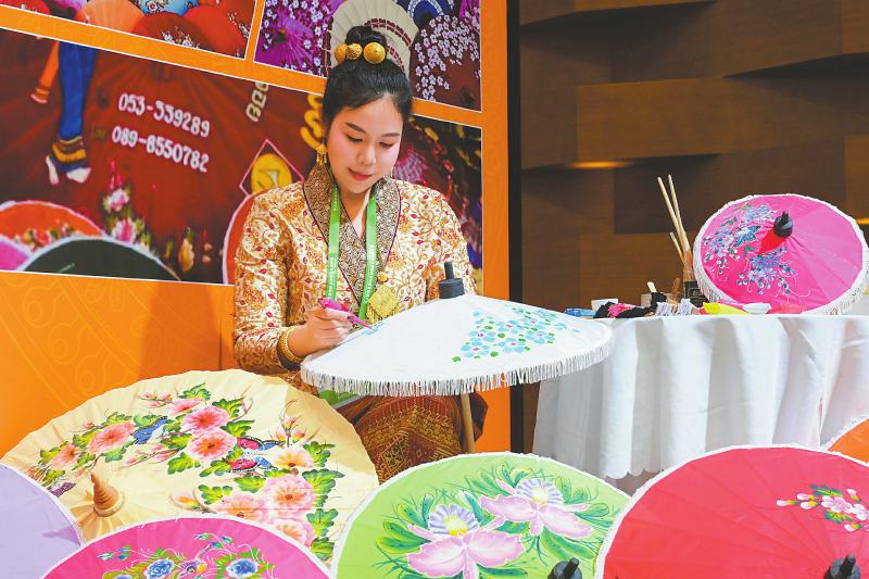 画伞面 现场绘制博桑伞。