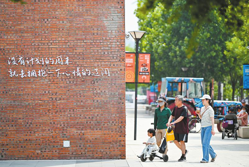 市民在天津天拖片区城市更新项目的街区内休闲(五月三十日摄)。近年来,天津积极实施“中心城区更新提升行动”,目前,共规划四十个城市更新片区,重点围绕老旧小区改造、工业遗存保护利用、闲置资产盘活等方面,着力补足民生短板、传承历史文脉、推动产业焕新,在更新改造中完善拓展城市新空间,为区域高质量发展注入新活力。新华社记者 孙凡越 摄