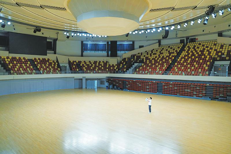 主场馆内,约1200平方米的FOP(比赛区)已准备就绪,2500余个座位环绕四周。李媛媛介绍,场馆在以往大赛的基础上进行了局部改造,比如对墙面进行了粉刷、在原有功能室的基础上增设了兴奋剂检查室。
