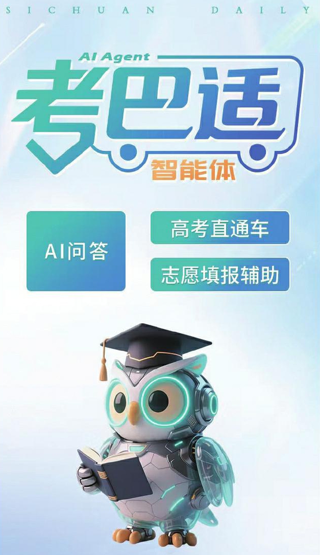 2025年高考期间哪些事项需要注意?高考录取批次和志愿怎么设置?志愿填报又有什么技巧……考生和家长别急,你的AI招考助手智慧猫头鹰“聪哥”来帮你了。 6月5日,由川观新闻和四川省招生考试指导中心联合打造的“考巴适”智能体上线,关于高考的相关问题在这里都可以一键问答。