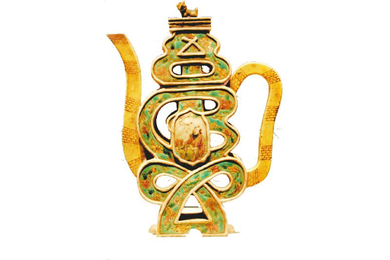 清五彩人物纹寿字 形 瓷 执壶(四川博物院藏)。