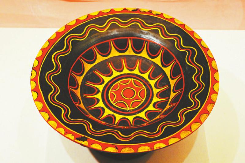 民国木胎漆绘太阳纹餐盘(凉山彝族自治州博物院藏)。汪杨 摄