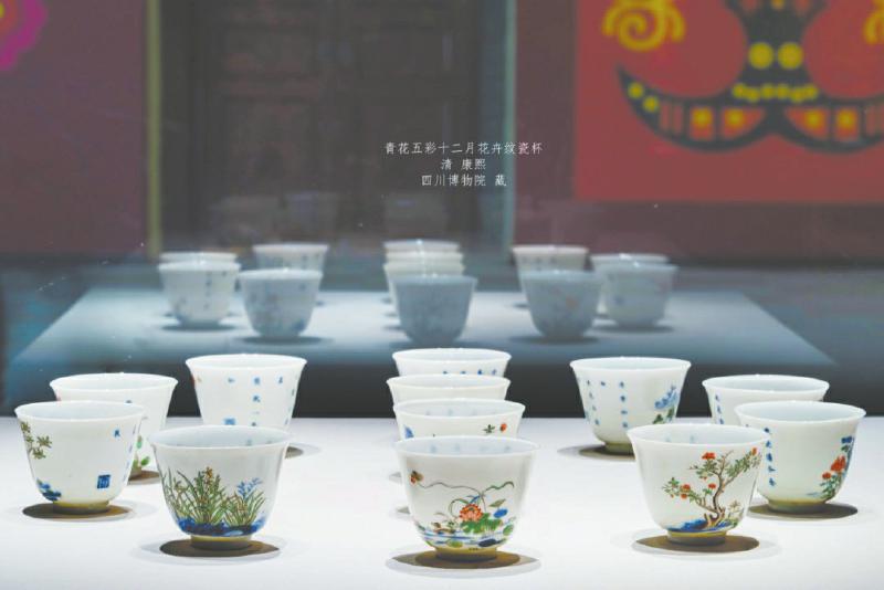 在四川博物院临展厅内,陈列着一套清康熙青花五彩十二月花卉纹瓷杯,其中的五月石榴纹尤为瞩目。策展人、四川博物院典藏部副主任李媛说:“石榴结籽籽籽连心,石榴在传统文化中是吉祥美好、团结繁荣的象征,这也是四川各民族共同的祈愿。”