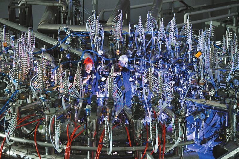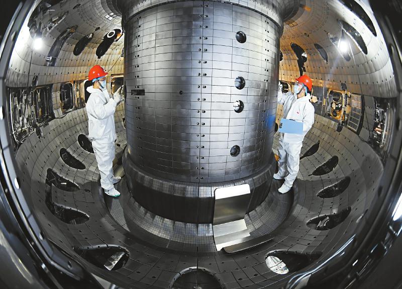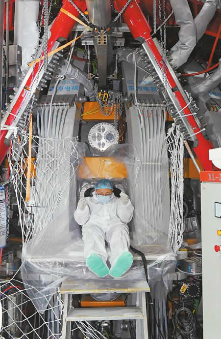 6月7日,新一代人造太阳“中国环流三号”顶部。