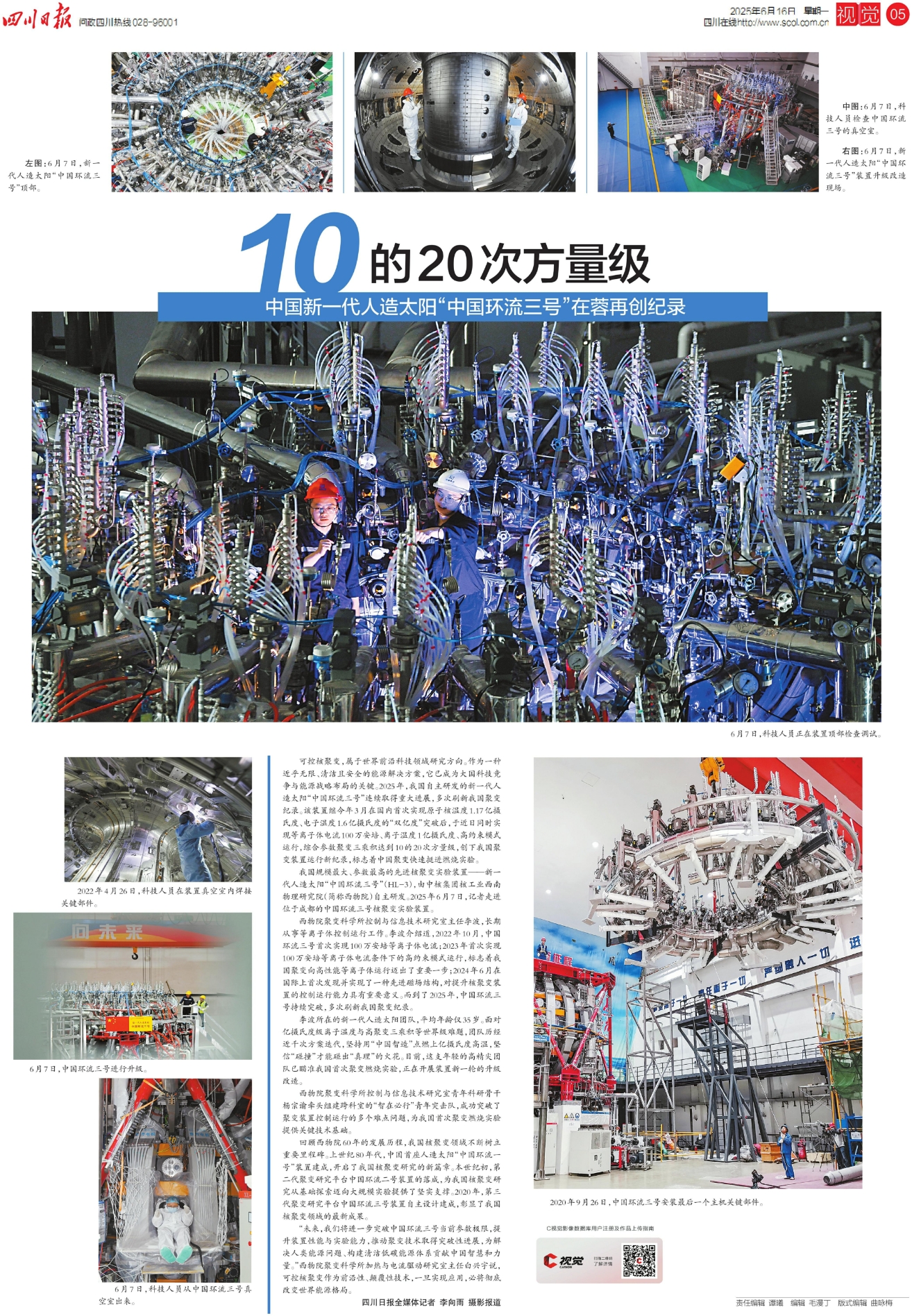 我国规模最大、参数最高的先进核聚变实验装置——新一代人造太阳“中国环流三号”(HL-3),由中核集团核工业西南物理研究院(简称西物院)自主研发。2025年6月7日,记者走进位于成都的中国环流三号核聚变实验装置。