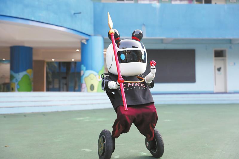 “同学们,早上好!”当天早上,在成都市泡桐树小学,手持火尖枪、脚踩风火轮的机器人“小吒”准时上岗,迎接同学们。