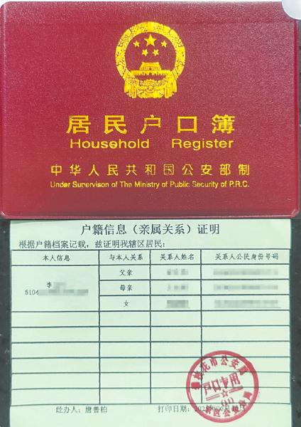 记者看到,李志兰拿到的“亲属关系谱”,就像单独的一页户口本,证明页上罗列了她与父亲、母亲、子女的关系和信息。