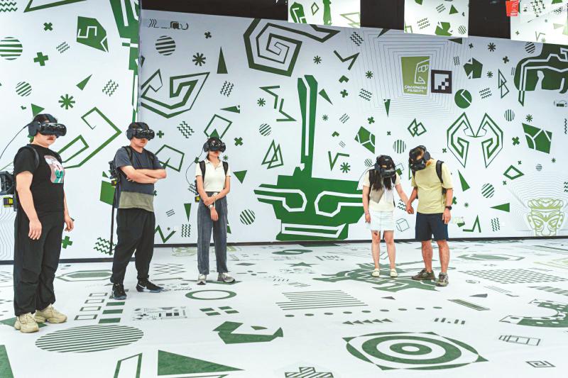 在三星堆博物馆《寻觅三星堆》互动体验项目现场,观众戴上MR眼镜就可以一秒穿越古蜀国。可以飞翔至三星堆博物馆新馆顶部,远眺遗址区的壮阔;可以驾驶一叶黄金面具,穿越古城见证沧海桑田;也可以跳进祭祀坑内,自由“触摸”文物。在这里,考古领队、发掘队员、馆长等考古人纷纷出镜介绍考古成果,解答三星堆的各种秘密。为了营造逼真的场景,项目耗时数月按1∶1比例重构复原了祭祀坑、考古方舱、实验室、象牙库房、青铜馆与新馆6个数字孪生场景,满足人们在欣赏文物之外体验考古等更多场景的需要。