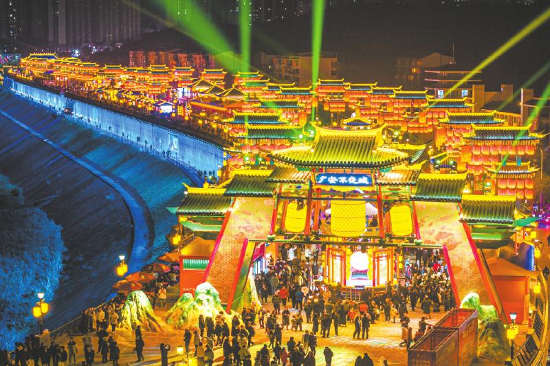 做靓“嘉陵江畔游”。聚焦“水上、船上、岸上”三篇文章,重点打造“一道一镇一线”,努力将“千里嘉陵,武胜最长”变为“千里嘉陵,广安最美”。武胜县沿口古镇成为热门旅游目的地,“嘉陵夜游”“十里夜宴”等成为游客消费新热点。