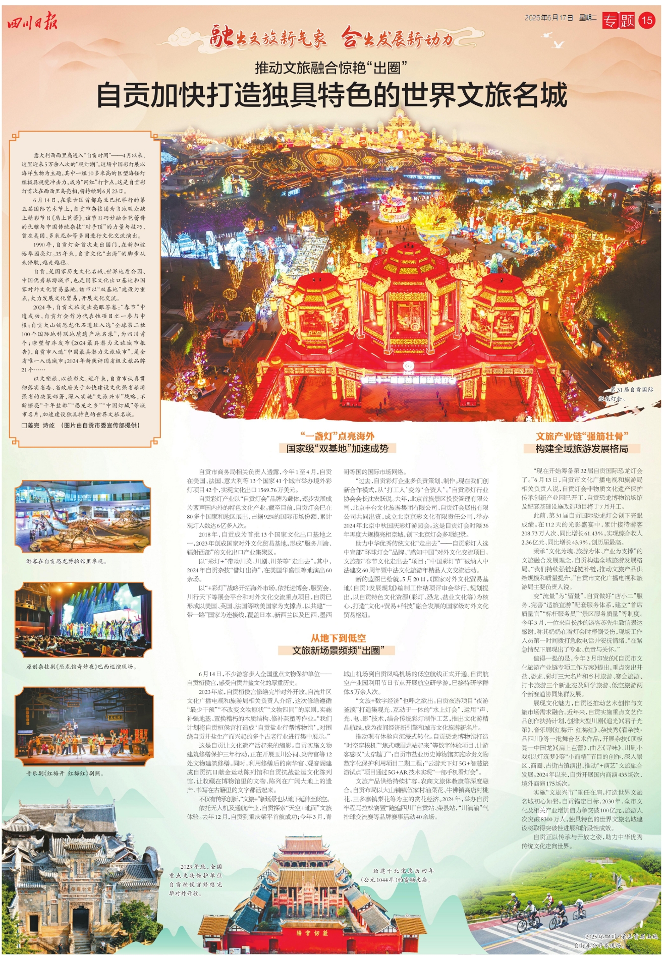 秉承“文化为魂、旅游为体、产业为支撑”的文旅融合发展理念,自贡构建全域旅游发展格局。“我们持续强链延链补链,推动文旅产品供给规模和质量提升。”自贡市文化广播电视和旅游局主要负责人说。