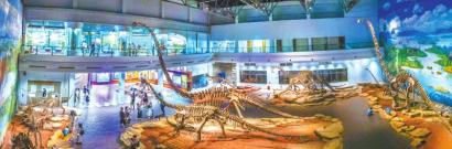 游客在自贡恐龙博物馆里参观。原创杂技剧《恐龙馆奇妙夜》巴西巡演现场。音乐剧《红梅开 红梅红》剧照。2023年底,全国重点文物保护单位自贡桓侯宫修缮完毕对外开放。始建于北宋庆历四年(公元1044年)的富顺文庙。
