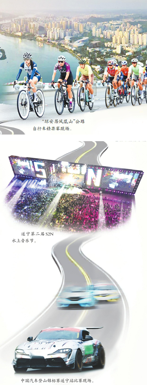 赛事活动的吸引力同样强劲,2024遂宁观音湖马拉松、中国汽车登山锦标赛以及全运会群众比赛航海车辆模型项目预赛等10余场大型体育赛事相继落地遂宁,累计接待游客超20万人次,活动期间全市星级酒店及等级民宿入住率达91.36%,带动社会消费超2.3亿元。