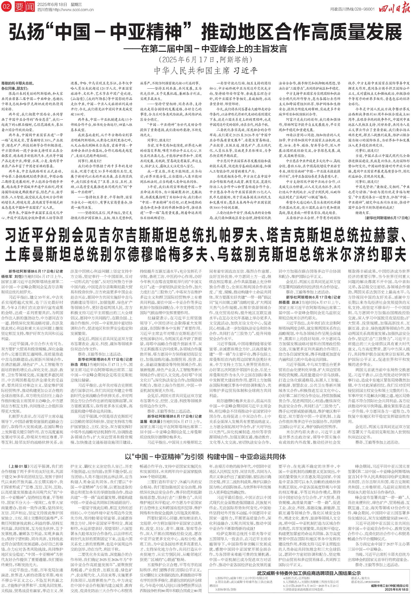 新华社阿斯塔纳6月17日电(记者郝薇薇 赵冰)当地时间6月17日上午,国家主席习近平在阿斯塔纳出席第二届中国-中亚峰会期间会见乌兹别克斯坦总统米尔济约耶夫。