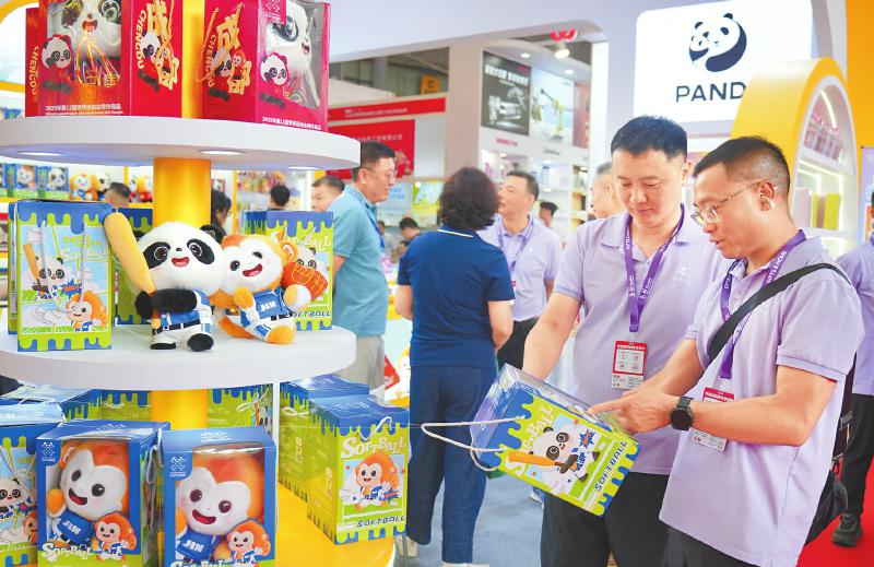 值得一提的是,在“2025成都礼物”展区内,200多件充满成都风情的文创产品惊艳亮相。元隆雅图的成都世运会吉祥物“蜀宝”“锦仔”《烟火成都》系列盲盒、融合蜀地竹文化的《熊有成足》茶器,可让观众沉浸式感受古蜀魅力与成都温情。