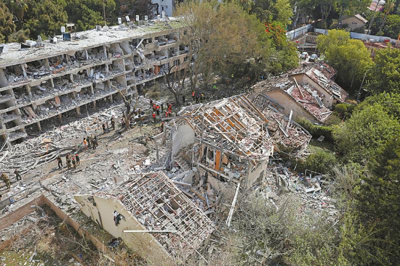 图为6月22日在以色列特拉维夫拍摄的在导弹袭击中被损毁的建筑。 新华社/路透