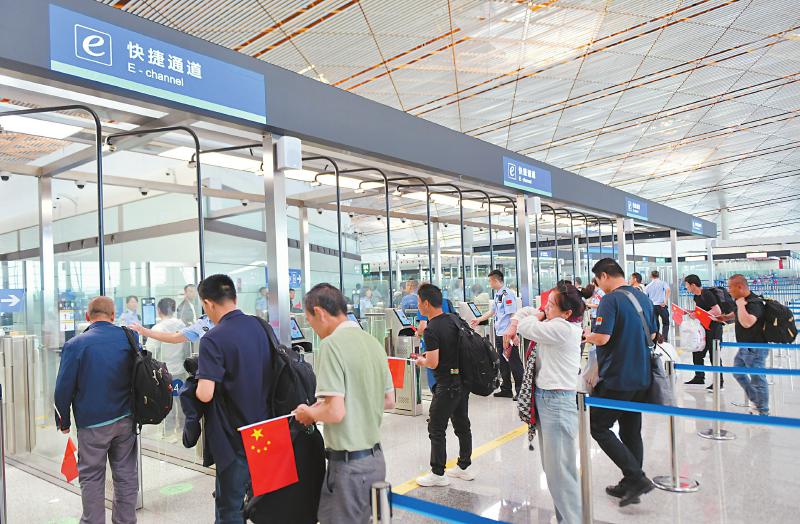 6月22日9时56分,第二架接返自伊朗撤离中国公民临时航班抵达北京首都国际机场。机上共搭载119名乘客,均为中国公民。图为旅客通过快捷通道入境。 新华社发(祖国宝 摄)