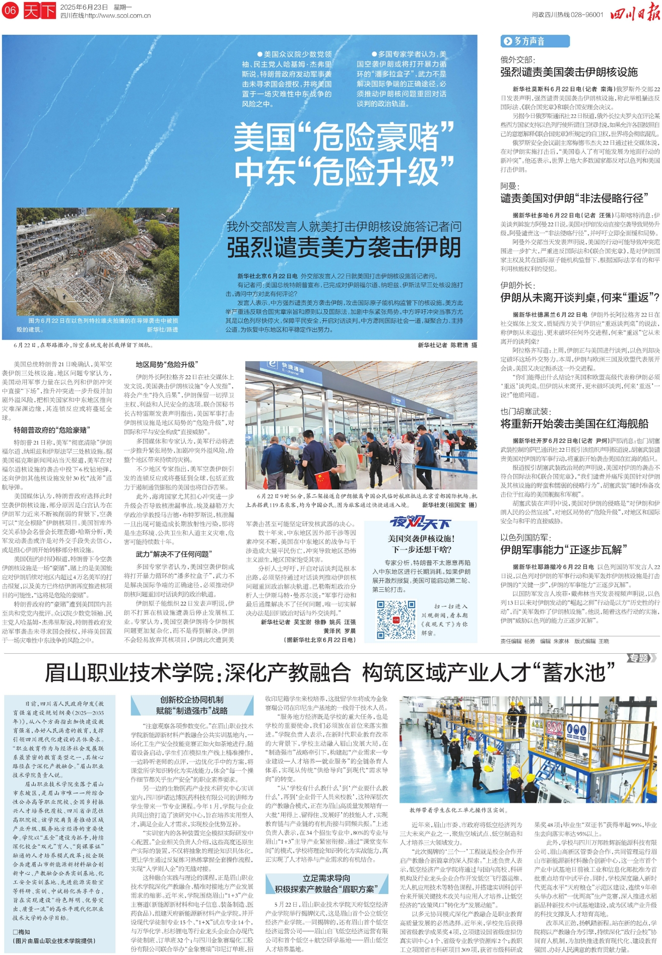 报道援引胡塞武装政治局的声明说,美国对伊朗的袭击不符合国际法和《联合国宪章》,“我们谴责并痛斥美国针对伊朗及其核设施的野蛮和懦弱的侵略行为”,胡塞武装“随时准备攻击位于红海的美国舰艇和军舰”。