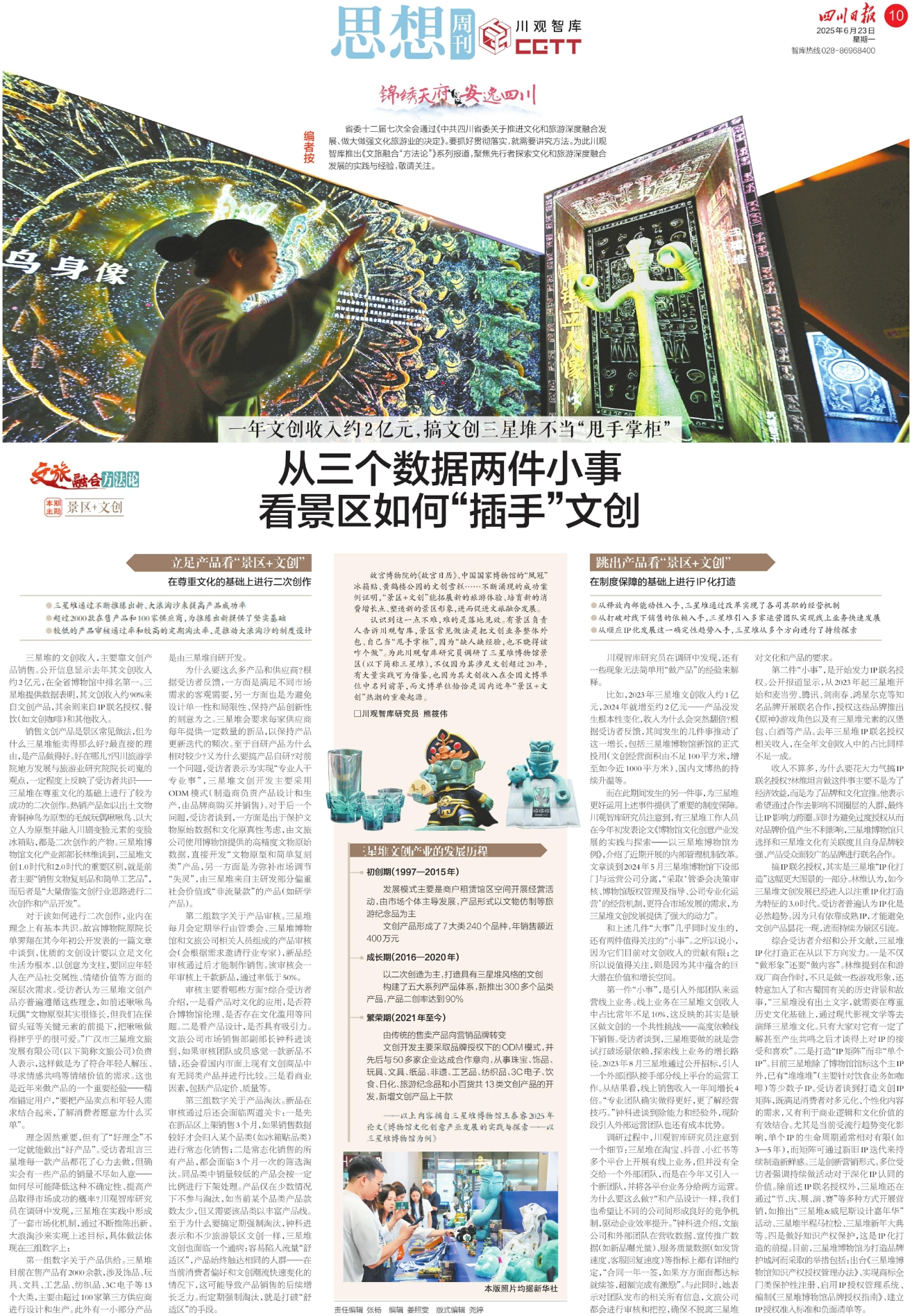 而在此期间发生的另一件事,为三星堆更好运用上述事件提供了重要的制度保障。川观智库研究员注意到,有三星堆工作人员在今年初发表论文《博物馆文化创意产业发展的实践与探索——以三星堆博物馆为例》,介绍了近期开展的内部管理机制改革。文章谈到2024年5月三星堆博物馆下设部门与运营公司分离,“采取‘管委会决策审核、博物馆版权管理及指导、公司专业化运营’的经营机制,更符合市场发展的需求,为三星堆文创发展提供了强大的动力”。