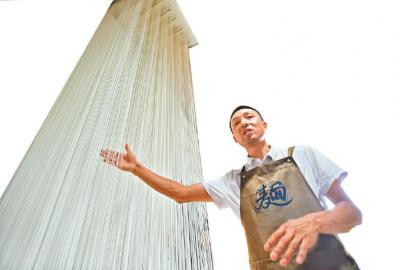 “德阳工匠”陈立亮展示手工制作的挂面。四川日报全媒体记者 华小峰 摄