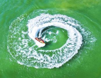 近日,南充市顺庆区渔溪镇嘉陵江内河上,水上运动爱好者正在进行赛摩训练。 吴斌 摄(C视觉)