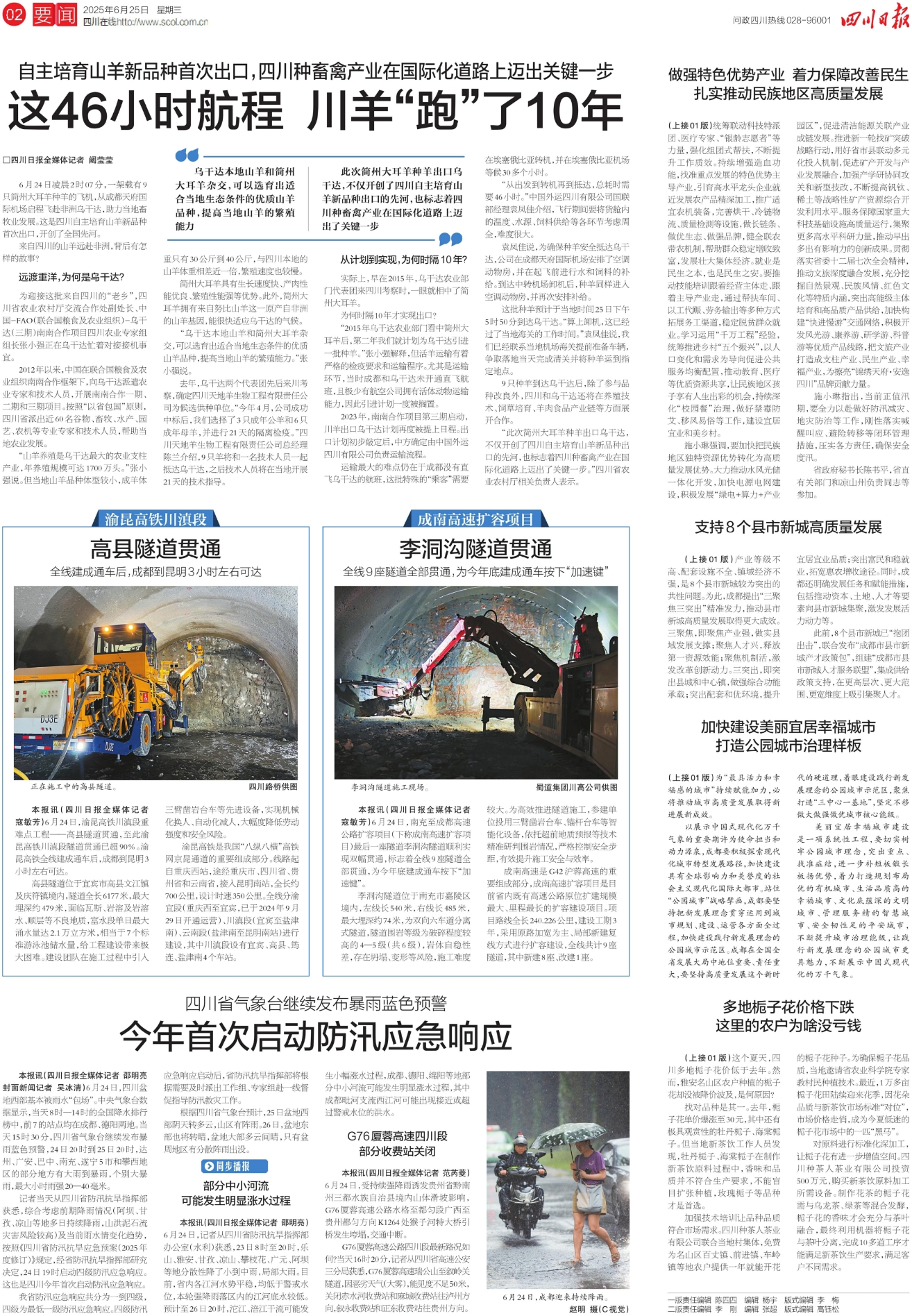 高县隧道位于宜宾市高县文江镇及庆符镇境内,隧道全长6177米,最大埋深约479米,面临瓦斯、岩溶及岩溶水、顺层等不良地质,富水段单日最大涌水量达2.1万立方米,相当于7个标准游泳池储水量,给工程建设带来极大困难。建设团队在施工过程中引入三臂凿岩台车等先进设备,实现机械化换人、自动化减人,大幅度降低劳动强度和安全风险。