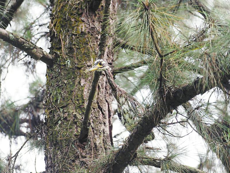 2023年成功救助海南鳽幼鸟后,威远县自然资源和规划局与自贡市自流井区亦趣自然保育中心合作,系统性启动了珍稀濒危鸟类监测项目。2023年2只、2024年3只、2025年4只——连续三年,调查监测团队在同一片马尾松林核心区观测到海南鳽成功繁殖,且雏鸟数量呈增长趋势。
