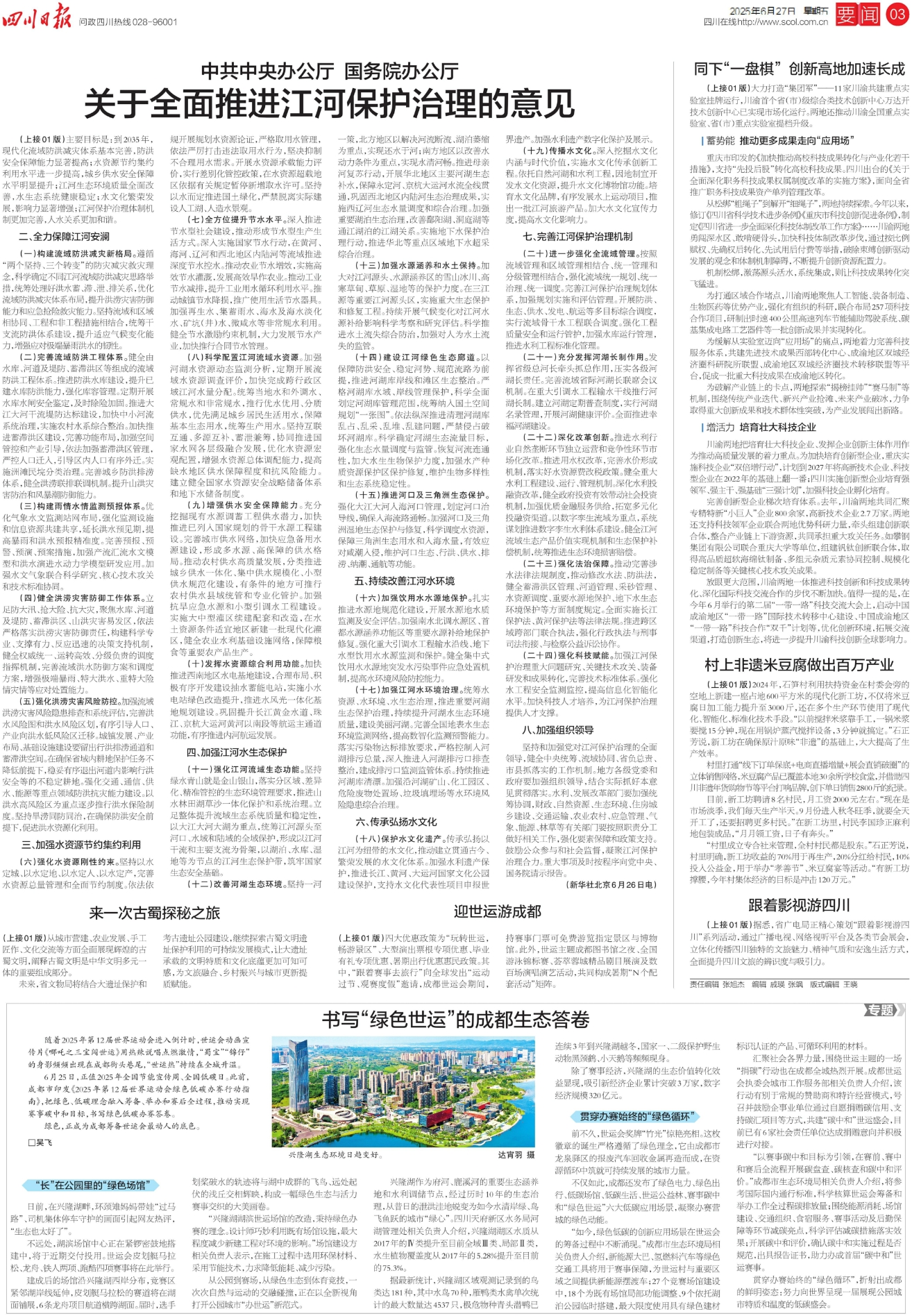 关于全面推进江河保护治理的意见