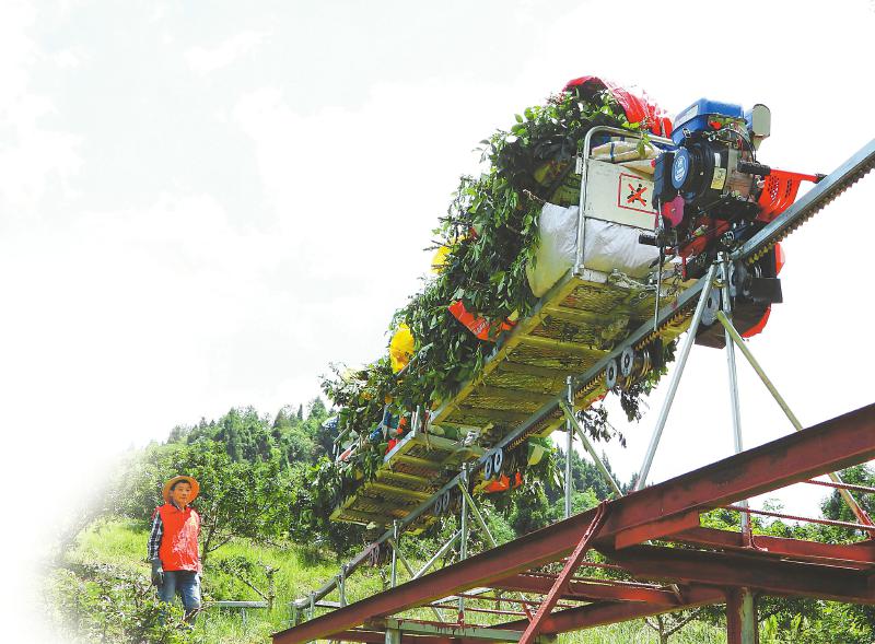 眼下,在达州高新区幺塘乡后河村佳丰种植专业合作社的花椒种植基地里,漫山遍野的青花椒长势喜人,椒农们忙着采摘、装车,一辆辆满载着翠绿青花椒的无人驾驶“智能小火车”穿梭在清香四溢的花椒树间,将花椒快速地从山顶运到了山脚的公路边。“智能小火车”替代椒农肩挑背驮,节省了劳力,提高了效率。邓良奎 摄(C视觉)