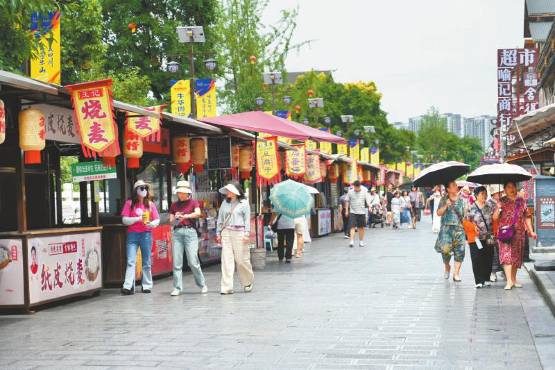 “美食+文旅”营造出乐山独具特色的城市魅力。数据显示,仅餐饮大会承接地——乐山市市中区一地,每年就吸引成千上万游客“打卡”美食。乐山市市中区副区长朱丹介绍,依托乐山大佛、嘉州古城、苏稽古镇等文旅资源,当地建成了张公桥、嘉兴路、上中顺等6条特色美食街区,烟火嘉州城获评首批国家级夜间文化和旅游消费集聚区。