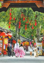 既要守好古城“老样子”,也要深挖自身文化积淀,积极拥抱新业态。在四川,不少古镇古城用“影视+”“演艺+”带动人气,探索文旅“新路子”。眉山柳江古镇抓住独特的川西建筑风貌和厚重的文化底蕴,吸引《我叫张思德》等影视剧组前来取景,成功孵化“影视+文旅”新业态,去年,古镇接待游客量突破385万人次。南充阆中古城推出大型实景文旅演艺剧目《阆苑传奇》,配合360度全景舞台、裸眼3D等,将三国时期的金戈铁马和阆苑仙境带进剧场,千年古城新意盎然。