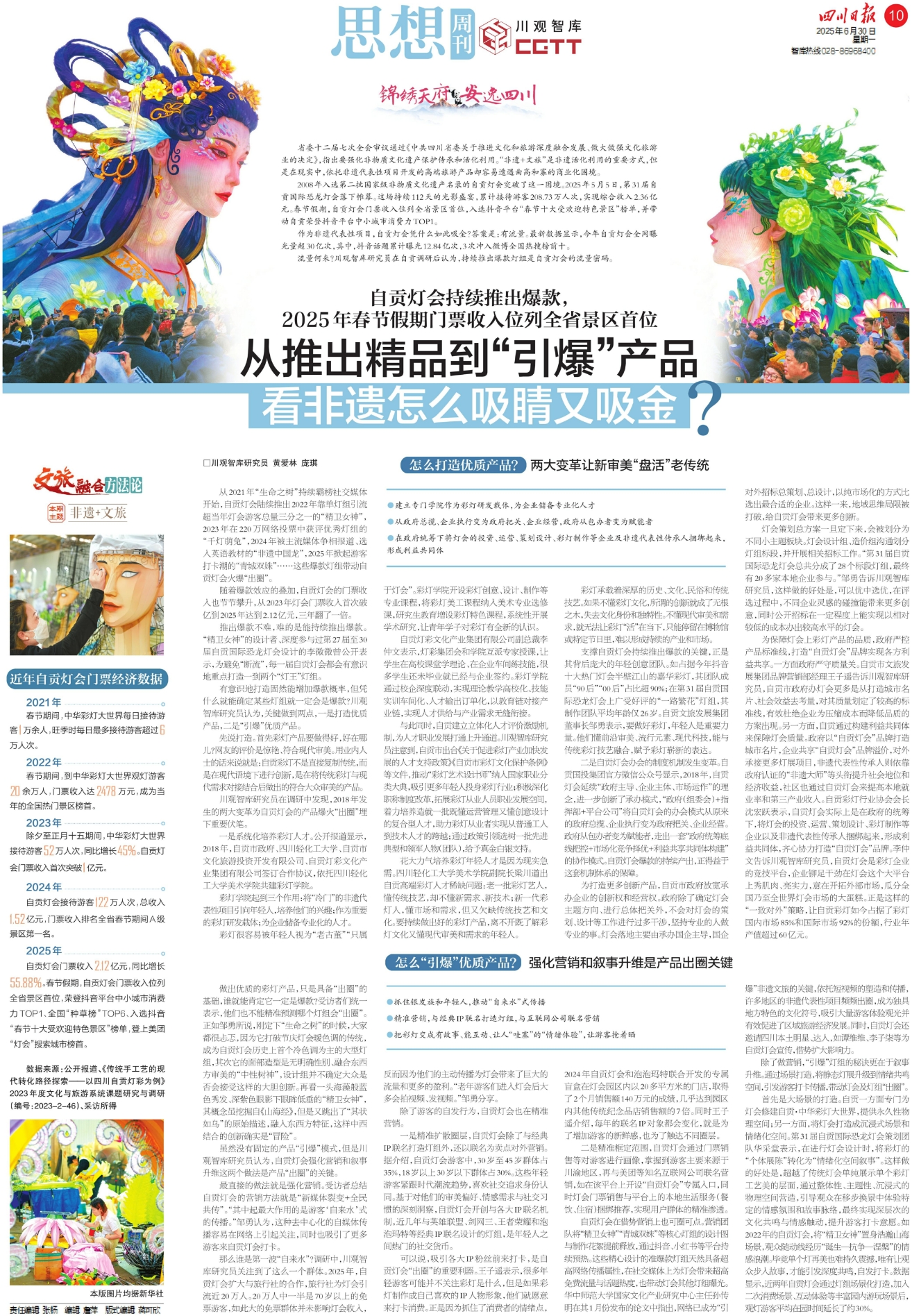 自贡灯会持续推出爆款,2025年春节假期门票收入位列全省景区首位