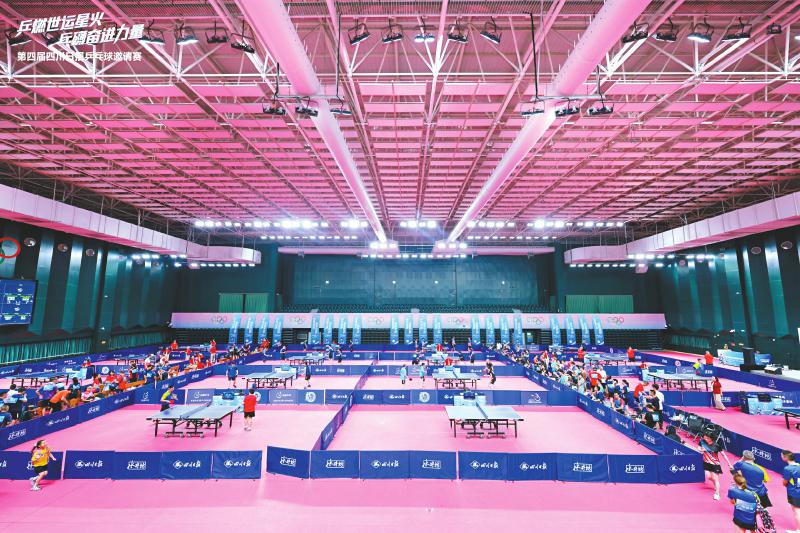 盛夏蓉城,世运潮涌。6月28日,以“‘乒’燃世运星火、‘乓’礴奋进力量”为主题的第四届四川日报乒乓球邀请赛在国家乒乓球成都体育训练基地火热开赛。比赛现场,球拍破风之声与观众的热情交织升腾,跃动的乒乓球点燃了蓉城喜迎世运会的澎湃激情。