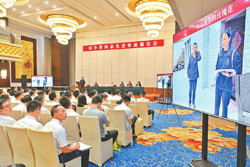 6月30日,何小青同志先进事迹报告会在成都举行。报告会开始前30分钟,一位穿着警服的男子在报告厅外的廊道上来回踱步。他没拿讲稿,也没有说话,甚至没怎么抬头,没人知道他在想些什么。