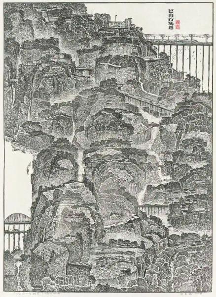 四川版画家向思楼2019年创作的《巴山行旅图》,其名称让人想到北宋范宽的《溪山行旅图》。二者山势均自下而上,广袤绵延,气象万千,构图都不拘泥于特定的空间,从不同的角度观察景物,观者需要上下左右移动视线才能遍览全局,恰好与中国山水画“边走边看”“边走边画”的造景手法和审美理念呼应,在“行”中领悟壮丽的故园山川情怀。《巴山行旅图》延续了向思楼精细严谨的画风,形象优美,内容充实,展现出丰富的层次感、韵律感和引人入胜的意境,供观者游目骋怀,也令人感受到作者对生活的热爱,对社会发展变化的敏锐表达。(余如波)
