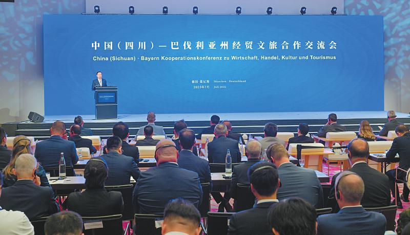 4日上午,中国(四川)—巴伐利亚州经贸文旅合作交流会在慕尼黑举行。王晓晖在致辞中说,习近平主席同默茨总理就开启全方位战略伙伴关系新篇章、引领中欧关系得到新发展达成重要共识,为新时期中德关系健康发展提供了方向指引。在中德两国友好的大背景下,四川与德国各地的交流日益密切,特别是与巴伐利亚州建立了紧密的友好合作关系。当前,众多国家战略在四川交汇叠加,四川在全国发展大局中的地位更加重要,正在加快构筑向西开放战略高地和参与国际竞争新基地,这将为德国朋友来川投资发展提供广阔舞台、带来无限商机。我们愿与大家携手推进科技和产业协作,在智能制造、数字经济、绿色低碳等领域深化合作,大力发展新质生产力,共同培育产业竞争新优势。我们愿与大家分享广阔的消费大市场,把德国品牌、技术、管理、服务优势与四川市场优势结合起来,深挖消费潜力、拓展投资空间,携手创造市场发展新机遇。我们愿与大家加强互联互通扩大开放合作,合力培育壮大跨境电商、服务贸易、数字贸易等新业态,不断拓展开放合作新空间。我们愿与大家持续深化人文交流和文旅融合发展,“锦绣天府·安逸四川”将以最大热情欢迎包括德国在内的各国朋友,实地感受四川的自然生态之美和多彩人文之韵,亲身领略中国式现代化的万千气象。
