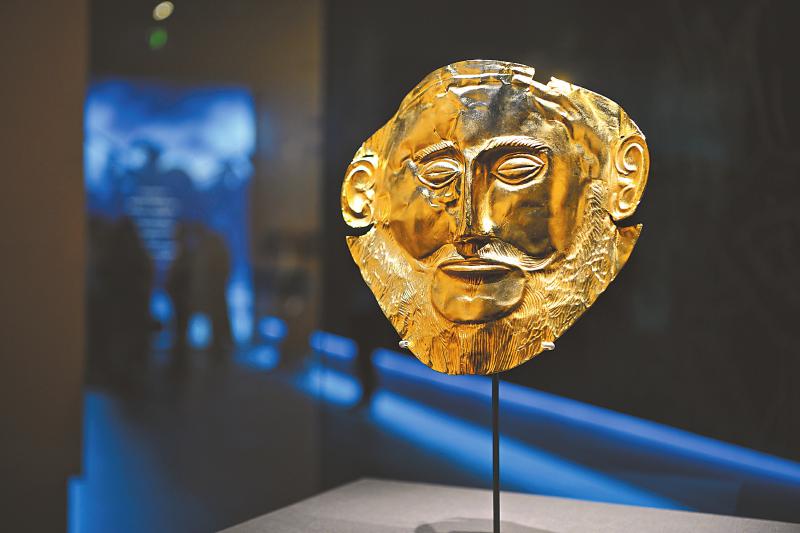 展览特别聚焦与三星堆文明同期的迈锡尼文明,探寻两大古老文明的共性与独特魅力。这不仅是文物的展示,也是考古学视野下中希文明的一次深度对话。迈锡尼文明的代表文物阿伽门农金面具(复制品),与三星堆出土的黄金面具等隔空相遇,让人直观了解何为文明的各美其美、美美与共。