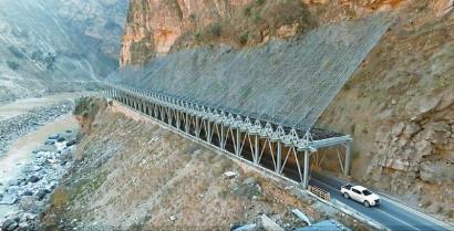 四川交通设计院相关负责人表示,装配式钢棚洞技术核心是“装配式”,是指像搭积木一样,将建设棚洞所需要的柱子、顶棚等“零部件”提前在工厂加工好,然后在工地“拼装”。与传统棚洞的设计理念不同,装配式棚洞运用分级分层防护理念,采取“以柔克刚+主动耗能”的方式,构建源头主动控制、过程柔性引导、末端棚洞防护的立体防护体系。此外,装配式钢棚洞还具有建设周期短、工程造价低等特点,目前该技术已在G213映汶公路等20余条公路130余座棚洞,以及广平高速等的54座隧道洞口崩塌落石防护中应用。