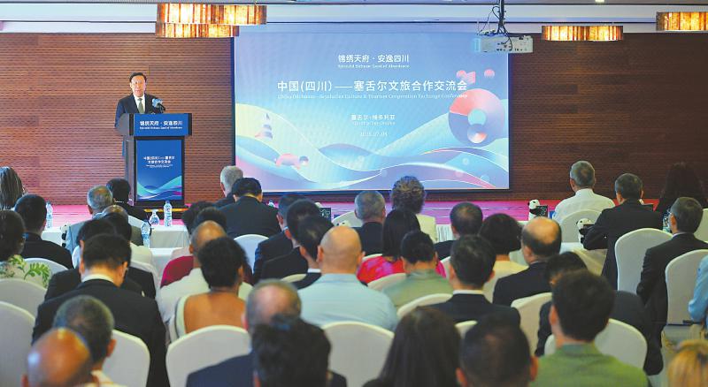8日下午,“锦绣天府·安逸四川”中国(四川)—塞舌尔文旅合作交流会在维多利亚市举行。王晓晖在致辞中说,去年9月,习近平主席在北京会见拉姆卡拉旺总统,将中塞关系提升为战略伙伴关系,明确表示支持开通中塞直航,鼓励两国游客“双向奔赴”。这次合作交流会,就是落实两国元首重要共识的具体行动,也是赓续中塞友谊的务实举措。四川文旅资源得天独厚,有厚重的巴蜀文化、壮美的锦绣山河、惬意的安逸生活和坚实的产业基础,正成为越来越多海内外游客的重要旅游目的地。上个月,我们对推进文旅深度融合发展、做大做强文化旅游业作出全面部署,全力绘就“诗”和“远方”的四川画卷,可以说四川文旅发展势头正劲、未来可期,我们期待与包括塞舌尔在内的世界各国进一步深化文旅合作、共谱文旅新篇。