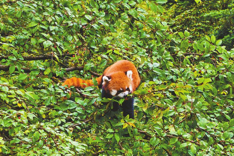 ·野樱桃红了 瓦屋山小熊猫变身“吃播博主”