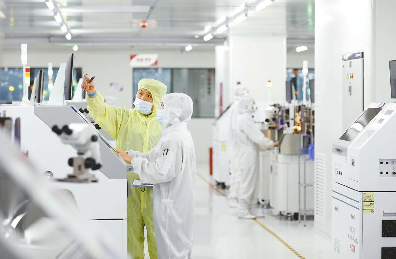 7月11日,在南充市顺庆区的四川顺芯半导体科技有限公司,工人们忙着赶制订单,生产电子元器件。顺庆区实施“产业提质”攻坚行动,推动半导体零部件和电子信息、新能源汽车汽配“一特两主”产业提级扩能。 黎涛 摄(C视觉)