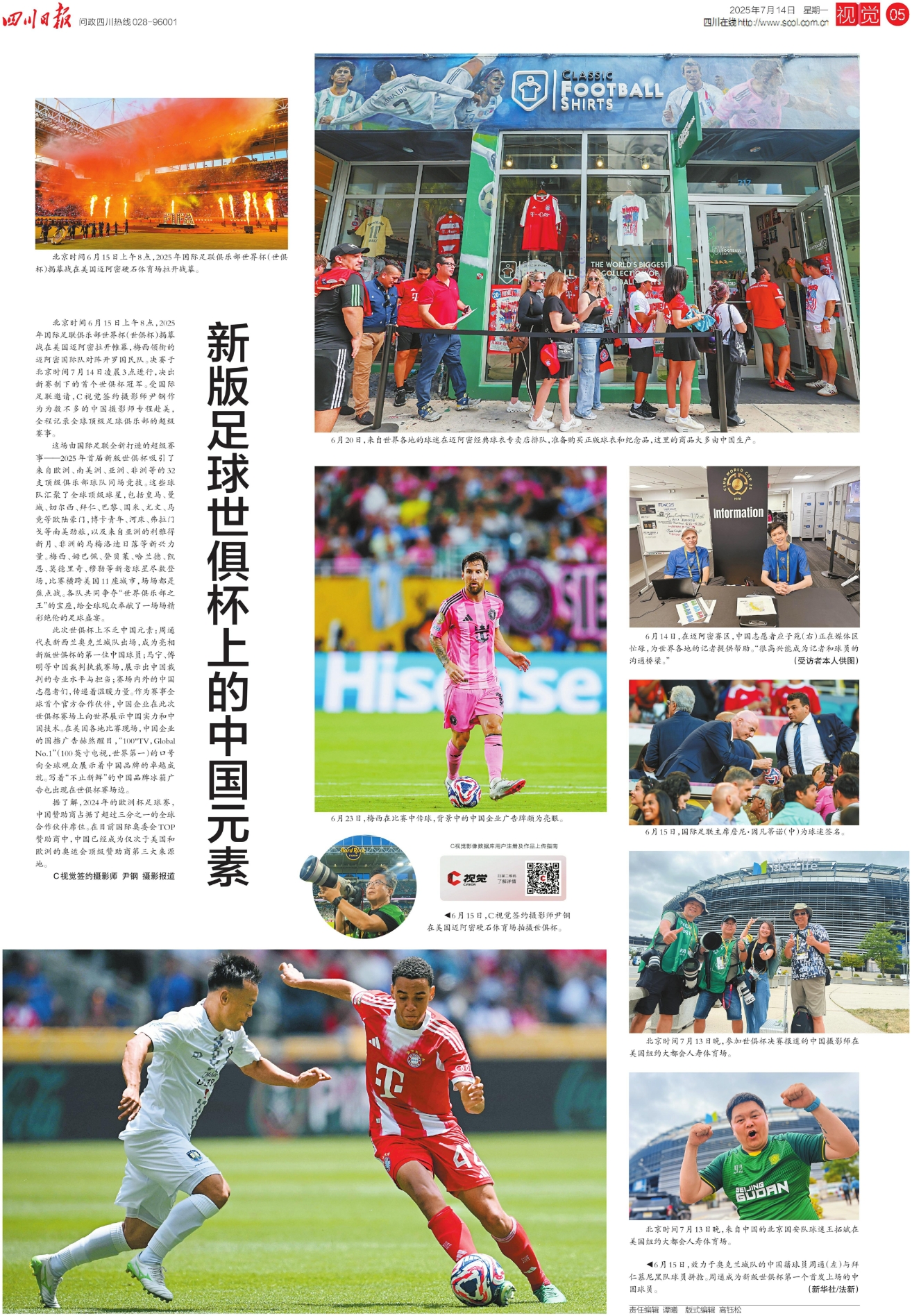 6月20日,来自世界各地的球迷在迈阿密经典球衣专卖店排队,准备购买正版球衣和纪念品,这里的商品大多由中国生产。北京时间6月15日上午8点,2025年国际足联俱乐部世界杯(世俱杯)揭幕战在美国迈阿密硬石体育场拉开战幕。6月23日,梅西在比赛中传球,背景中的中国企业广告牌颇为亮眼。6月14日,在迈阿密赛区,中国志愿者应子苑(右)正在媒体区忙碌,为世界各地的记者提供帮助。“很高兴能成为记者和球员的沟通桥梁。” (受访者本人供图)6月15日,国际足联主席詹尼·因凡蒂诺(中)为球迷签名。北京时间7月13日晚,参加世俱杯决赛报道的中国摄影师在美国纽约大都会人寿体育场。6月15日,效力于奥克兰城队的中国籍球员周通(左)与拜仁慕尼黑队球员拼抢。周通成为新版世俱杯第一个首发上场的中国球员。 (新华社/法新)北京时间7月13日晚,来自中国的北京国安队球迷王拓斌在美国纽约大都会人寿体育场。6月15日,C视觉签约摄影师尹钢在美国迈阿密硬石体育场拍摄世俱杯。
