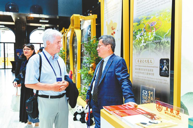 五粮液亮相德国慕尼黑川酒主题展,企业代表展开交流。