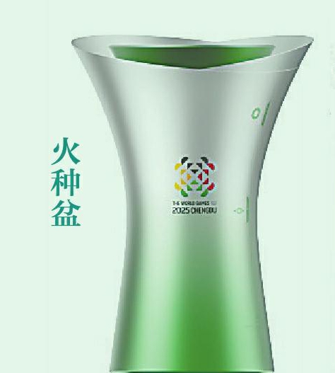 竹是四川最具代表性的植物之一,也是成都世运会火炬的重要元素,在火种灯、火种盆、采火棒的顶部也使用了绿色,呼应火炬上的竹元素。“宝墩遗址出土的碳化竹片证明,竹子曾是古蜀先民建造屋梁、制作器具的材料,更是成都平原4500年生生不息的见证。”唐淼说。