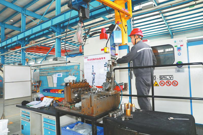 眉山中车紧固件科技有限公司员工用智能设备进行生产作业。 张亮 摄