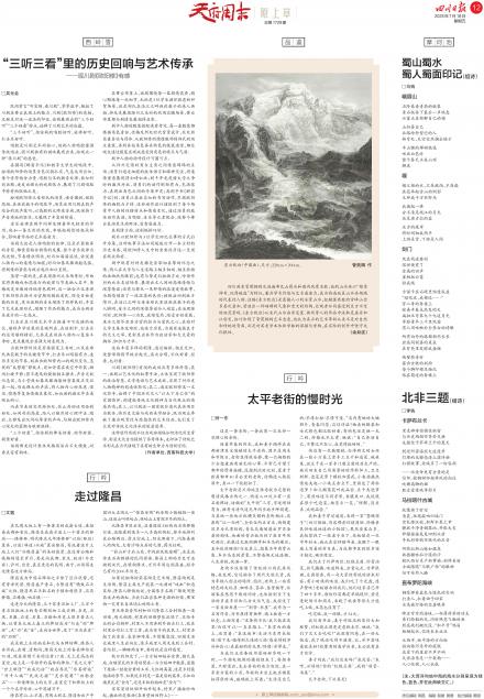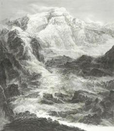 四川画家管苠棡的足迹遍布巴山蜀水和国内风景名胜,他的山水画以“雄秀神奇、沉厚峻逸”为特征,兼具学术价值与艺术感染力,成为西南地区山水画领域的代表性人物。这幅《东方既白》是震撼人心的全景山水,把错落有致的雪峰山峦多层次叠加,营造出一种磅礴的气象和宏大的结构,让观者如同感受到亘古不变的洪荒景观。《东方既白》从宋代山水画家范宽、郭熙等人的作品中汲取灵感并加以创变,恰巧体现了管苠棡的艺术态度,他认为真正的艺术革新从来不是对自然和传统的背离,而是对其美学本体和学脉的深掘与重构,在实际的创作中坚守文化根性。 (余如波)
