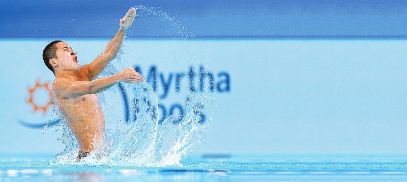 7月19日,2025年世界游泳锦标赛花样游泳男子单人技术自选决赛在新加坡举行。图为中国选手郭牧在比赛中。最终他获得第四名,俄罗斯选手获得冠军。 新华社记者 夏一方 摄