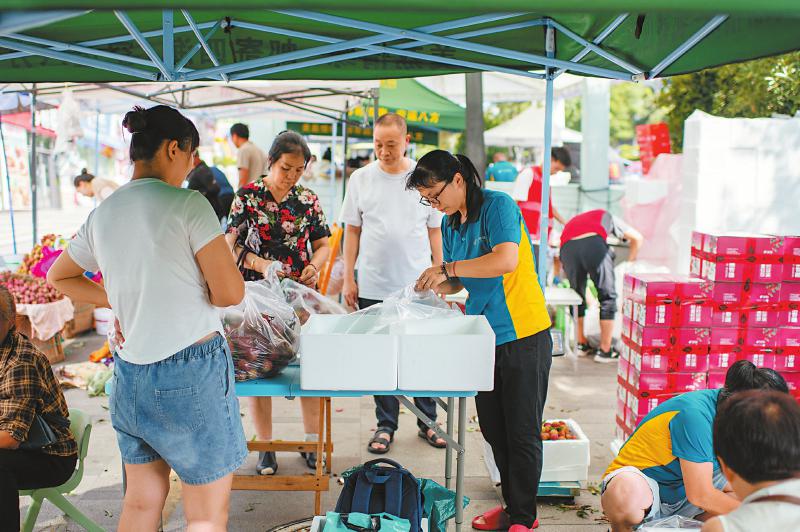 7月16日,游客在合江县马街荔枝交易市场选好荔枝后现场打包发快递。