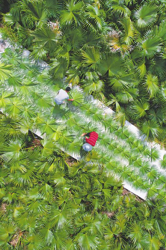 “三伏”时节,内江市东兴区杨家镇金银嘴村的家扬蒲葵种植专业合作社里一片繁忙,村民抢抓晴好天气,晾晒蒲葵叶、加工制作蒲扇。据介绍,金银嘴村发展蒲葵特色产业已超50年,蒲葵传统制作技艺是市级非物质文化遗产,金银嘴村也因之成为当地有名的“蒲扇村”。兰自涛 摄(C视觉)