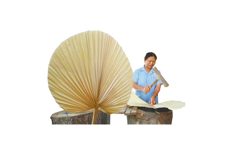 “三伏”时节,内江市东兴区杨家镇金银嘴村的家扬蒲葵种植专业合作社里一片繁忙,村民抢抓晴好天气,晾晒蒲葵叶、加工制作蒲扇。据介绍,金银嘴村发展蒲葵特色产业已超50年,蒲葵传统制作技艺是市级非物质文化遗产,金银嘴村也因之成为当地有名的“蒲扇村”。兰自涛 摄(C视觉)