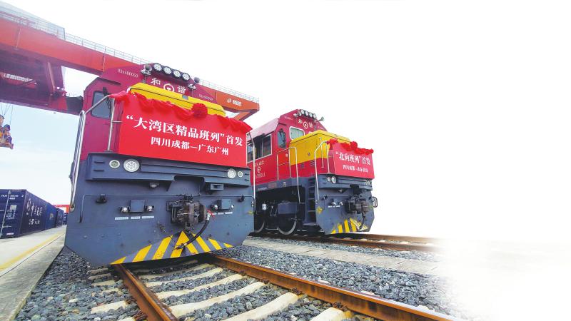 北向班列贯通川鲁—京津冀,每周开行2—3列,可缓解四川至山东等地物流运输主要依靠公路、物流成本较高的现状,进一步优化运输结构、降低企业成本。大湾区精品班列直链粤港澳,初期为隔日开行,后将每日双向对开。相比2024年1月10日,成都首发到广州的大湾区班列,精品班列将运输时间从72小时缩至最快32小时。未来,将通过“班列+产业集群”模式,带动川粤两地电子信息、装备制造、新能源产业协同,四川的白酒、农副产品也可通过冷链专列直供粤港澳消费市场。